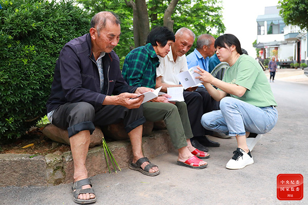 浙江省江山市紀委監(jiān)委通過推送微信,發(fā)放口袋書、廉情卡等方式,積極引導群眾了解《江山市村級小微權力清單35條》,鼓勵廣大群眾參與監(jiān)督,促進村級小微權力規(guī)范運行。(浙江省江山市紀委監(jiān)委 祝毅 攝)