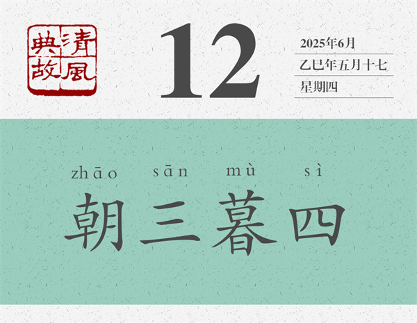 “朝三暮四”也寫作“朝四暮三”,指在不增加成本的基礎(chǔ)上,或者在換湯不換藥的情況下,善于用智謀來說服或駕馭他人。但是,不知從何時(shí)起,它們就成了“朝秦暮楚”的代名詞,用來比喻一個(gè)人見異思遷、喜新厭舊,或三心二意、反復(fù)無常。