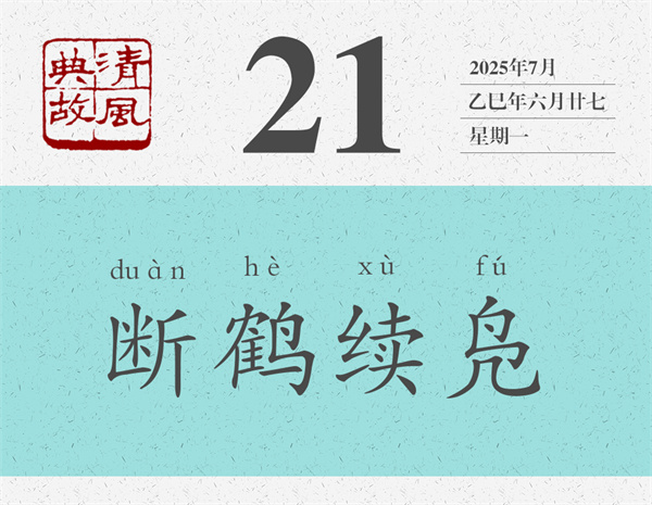 后世即將“鳧脛雖短,續(xù)之則憂;鶴脛雖長(zhǎng),斷之則悲”縮寫為“斷鶴續(xù)鳧”,用以譏諷那些憑著自己的想象,不按規(guī)律辦事的主觀主義者。明末清初詩人陳子升《短歌行》:“斷鶴續(xù)鳧,云胡短長(zhǎng)。”也用來批評(píng)那些不顧事物自身規(guī)律,過分追求整齊劃一的形式主義者??涤袨椤稄V藝舟雙楫·卑唐》:“至于有唐,雖設(shè)書學(xué),士大夫講之尤甚。然纘承陳隋之余,綴其遺緒之一二,不復(fù)能變,專講結(jié)構(gòu),幾若算子。截鶴續(xù)鳧,整齊過甚。”