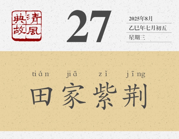 后人即以“田家紫荊”為典,形容兄弟之間同根而生,和睦相處。楊萬里詩《題蕭端虛和樂堂》有這樣的句子:“白頭兄弟不多有,面如橘紅不關(guān)酒。紫荊花開連理枝,孝友未要時人知。”其中“紫荊花開”即化用此典。兄弟同根同源,沒有理由四分五裂,沒有理由互相爭斗。正如曹植《七步詩》所云:“煮豆燃豆萁,豆在釜中泣。本是同根生,相煎何太急?”常言道:“兄弟齊心,其利斷金。”兄弟之間只要心往一處想,勁往一處使,家庭就能欣欣向榮,興旺發(fā)達。
