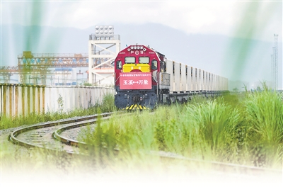 8月23日,前往老撾萬象的國際貨物列車駛出中老鐵路中國玉溪研和站。當日,中老鐵路國際貨物列車(玉溪—萬象)實現雙向開行。新華社記者 陳欣波 攝