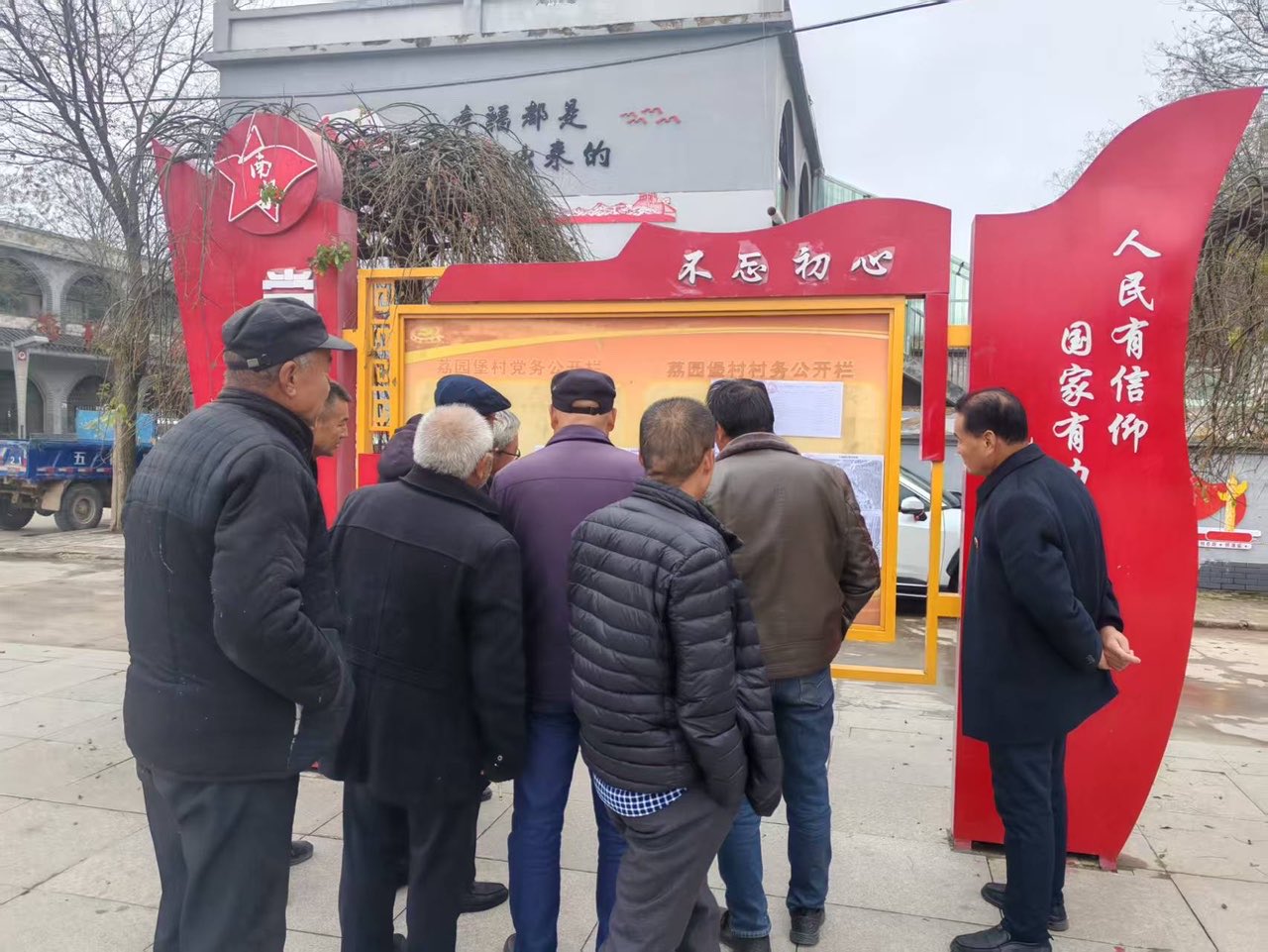 2025年11月20日,村民在南梁鎮(zhèn)荔園堡村村務公開欄前查看村級財務收支情況。