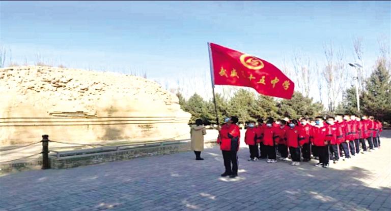 2019年8月,涼州會盟被編入教育部統(tǒng)編高一歷史教材,這是一件具有重大意義的事情,為全國中學(xué)生鑄牢中華民族共同體意識發(fā)揮了積極作用。為生動呈現(xiàn)統(tǒng)編教材中涼州會盟這一重大歷史事件,受央視華語環(huán)球節(jié)目中心《國家記憶》欄目組委托,武威市電視臺攝制組和武威十五中學(xué)師生50多人親臨涼州會盟紀(jì)念館,現(xiàn)場參與采訪拍攝現(xiàn)場教學(xué)的相關(guān)事宜。