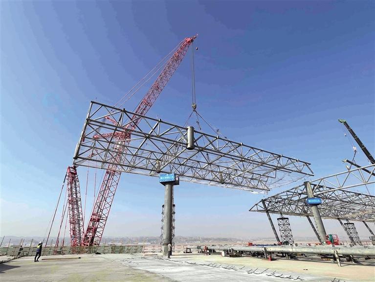 中國甘肅網(wǎng)12月30日訊 據(jù)蘭州日?qǐng)?bào)報(bào)道(記者 薛曉霞)近日,蘭州中川國際機(jī)場(chǎng)三期擴(kuò)建工程航站樓D指廊鋼結(jié)構(gòu)完成封頂。