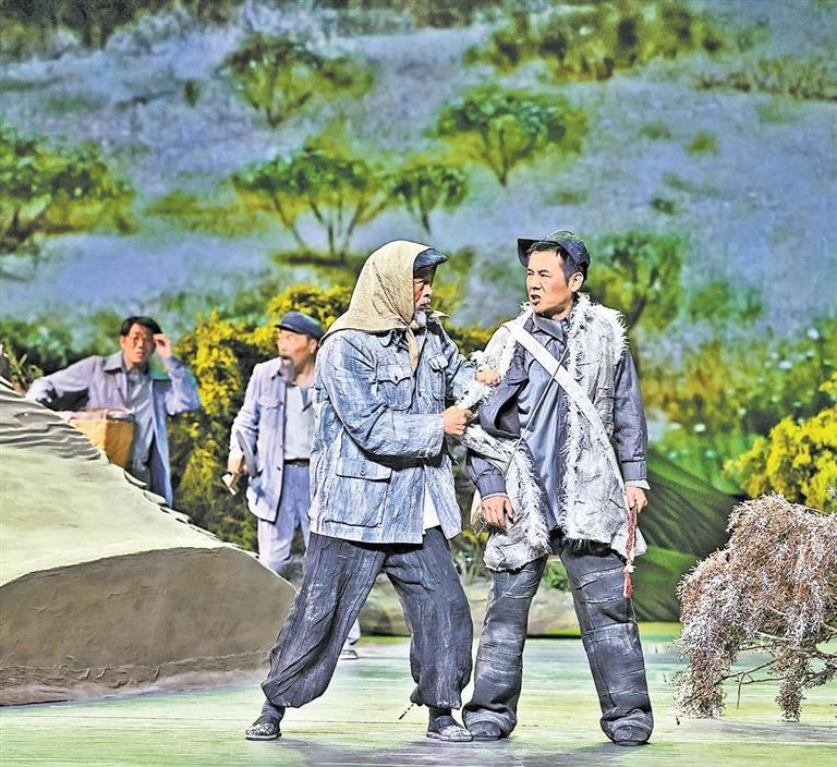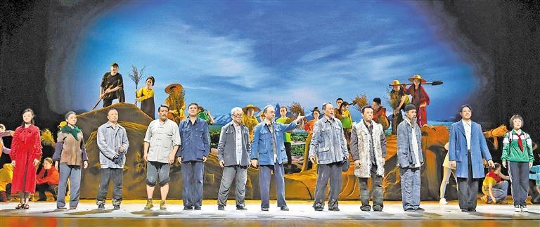 現(xiàn)實題材是話劇藝術的寵兒,在話劇進入中國一百多年的時光中,現(xiàn)實題材創(chuàng)作占據(jù)相當大的比例。在近當代中國歷史的進程中,話劇始終起著敢為天下先、針砭時弊的作用,但話劇又有其極其特殊的藝術框范。人們在觀看話劇時,仿佛就是在觀看自己的人生,觀看自己和身邊最熟悉的人們,這是話劇藝術獨具的極高的審美要求。尤其是現(xiàn)代題材的創(chuàng)作,稍有不慎便會陷入同質化的僵硬模式,使舞臺藝術失去應有的美感。話劇《八步沙》讓6個老漢成為舞臺聚光燈下的主角,體現(xiàn)了創(chuàng)作者們呼應時代之需,為最普通的農民寫生立傳的拳拳之心。6個老農民談不上人們通常意識中的“美”,“治沙”這樣的故事也相對比較單調,不大容易出彩,而創(chuàng)作者們以八步沙這個真實的地名作為劇名,以“六老漢”治沙這個真實的事件作為全劇的敘述內容,卻能宕開一筆把特定的外部環(huán)境與人物的內心世界巧妙地融為一體,為全劇注入了濃郁飽滿的戲劇情境和情感,使這部話劇有了獨屬于自己的一份力度、一份無法替代的光彩。全劇的情節(jié)一曲三折,以小見大,當黑壓壓的沙塵暴鋪天而來的時候,當六老漢在嚴酷的環(huán)境中吃盡苦頭,摸索出“一棵樹,一把草,壓住沙子防風掏”的寶貴經驗,使漫無邊際的沙漠終于出現(xiàn)一抹綠色,繼而眼看著一棵又一棵綠樹成活成林,終于成為一片綠洲的時候,我相信觀眾的心也被藝術琴弦撥動,始終被劇情牽著走,為劇中人物的命運擔心、懸心、痛心、開心,從中深深地感受到劇中所蘊藏的豐富內涵和它所傳達出的真切意趣。
