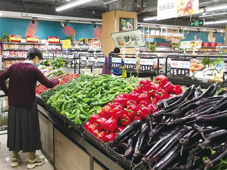超市蔬菜、水果和肉蛋類供應正常儲備充足。 蔣凌 攝