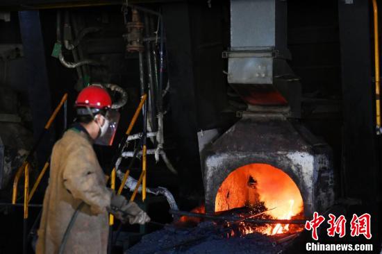 金川集團(tuán)鎳冶煉廠閃速爐車間內(nèi),工作人員穿戴專業(yè)防護(hù)裝備觀察轉(zhuǎn)爐天然氣烤爐。