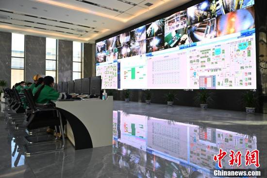 金川集團(tuán)鎳冶煉廠閃速爐車間生產(chǎn)指揮中心現(xiàn)場(chǎng),工作人員正在進(jìn)行遠(yuǎn)程監(jiān)控和操作。
