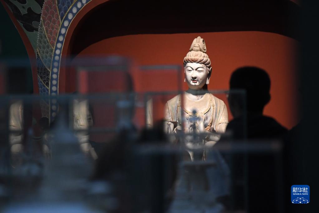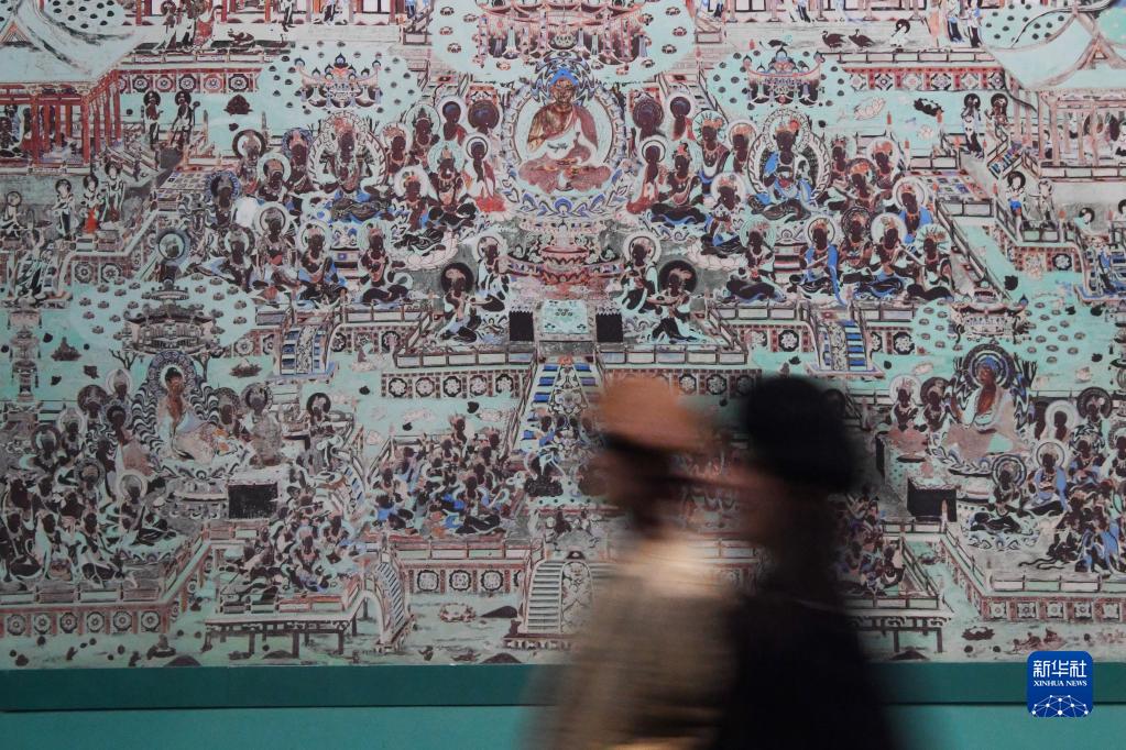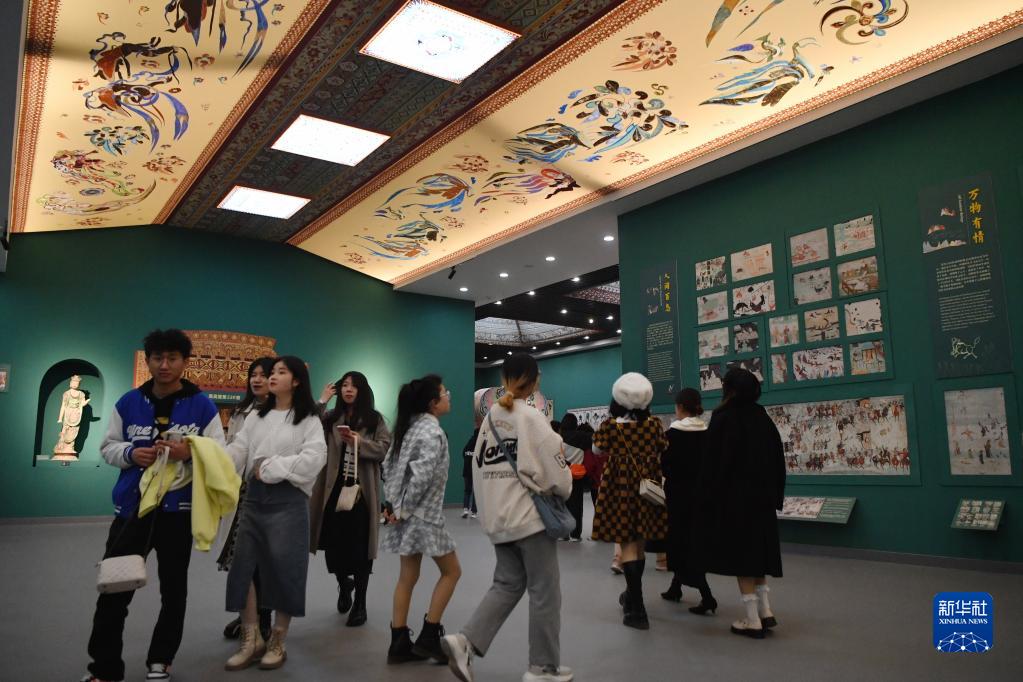 4月5日,觀眾在敦煌研究院蘭州分院敦煌藝術(shù)館參觀。新華社記者 陳斌 攝