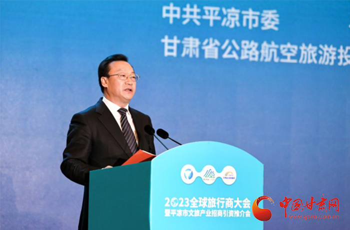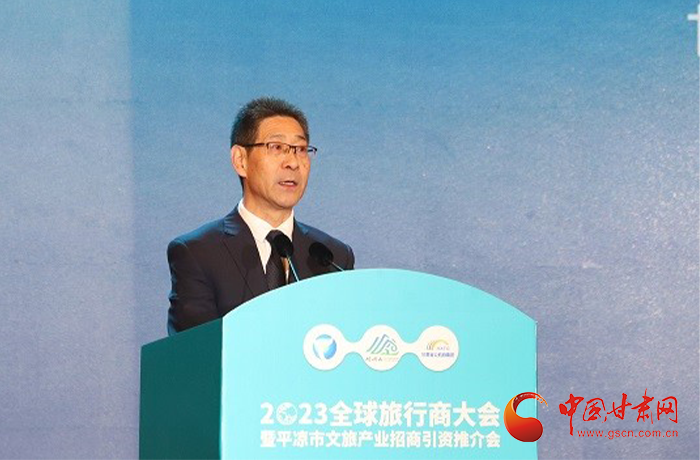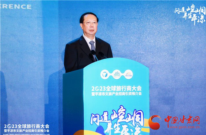 何效祖在致辭中說,平?jīng)鍪歉拭C向東開放的“門戶”城市,是風(fēng)景宜人的旅游城市,是甘肅布局的文旅康養(yǎng)基地和支撐“一核三帶”區(qū)域發(fā)展格局中的重要支點(diǎn),擁有崆峒山、大云寺·王母宮、瑤池溫泉等眾多聞名遐邇的人文和自然景觀。今天,我們與平?jīng)鍪形姓?、中?guó)旅行社協(xié)會(huì)、甘肅公航旅集團(tuán)一道搭建平臺(tái),誠(chéng)邀各位嘉賓走進(jìn)甘肅、深入平?jīng)?,組織開展宣傳推介、洽談合作、展示展銷、考察踩線等系列活動(dòng),就是要引導(dǎo)大家深度感知甘肅高質(zhì)量發(fā)展的強(qiáng)烈愿望,實(shí)地觸摸甘肅文旅如火如荼的生動(dòng)實(shí)踐,誠(chéng)懇表達(dá)隴原兒女“視企業(yè)家為最寶貴財(cái)富”的真誠(chéng)合作和赤誠(chéng)服務(wù)之心。我們衷心希望,廣大中外旅行商和文旅專家、文旅企業(yè)家以本次大會(huì)為契機(jī),加強(qiáng)交流互鑒,深化務(wù)實(shí)合作,加大在甘投資力度,組織更多游客到甘肅觀光旅游,帶動(dòng)更多優(yōu)質(zhì)文旅企業(yè)和項(xiàng)目落戶甘肅,合力譜寫甘肅文旅高質(zhì)量發(fā)展的嶄新篇章!