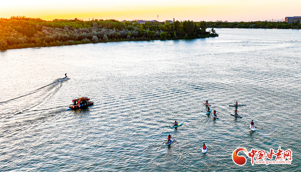6月13日,張掖市甘州區(qū)“樂游甘州·水上嘉年華”觀光娛樂項(xiàng)目正式啟航,眾多游客體驗(yàn)觀光畫舫、動(dòng)力沖浪板、快艇滑翔傘等水上運(yùn)動(dòng)觀光項(xiàng)目。