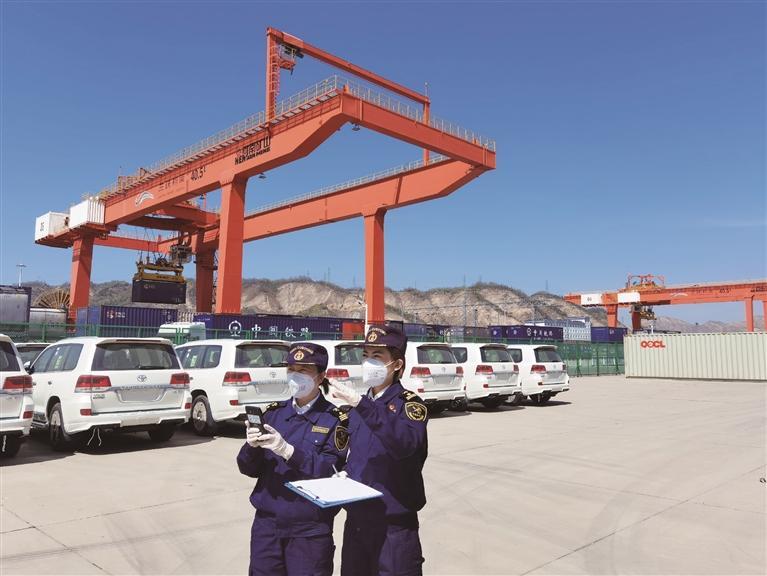 蘭州海關(guān)工作人員現(xiàn)場(chǎng)檢查