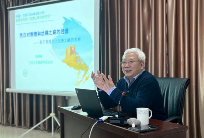 2024年3月21日下午,蘭州大學(xué)鄭炳林教授應(yīng)邀在“絲綢之路與敦煌學(xué)”系列公益學(xué)術(shù)講座主講《兩漢對敦煌和絲綢之路的經(jīng)營》。講座由敦煌研究院敦煌文獻研究所主辦,趙曉星研究員主持,在蘭州分院舉行。我院專家學(xué)者,蘭州大學(xué)、西北師范大學(xué)、西北民族大學(xué)師生,及敦煌學(xué)愛好者50余人現(xiàn)場參加了此次學(xué)術(shù)活動。