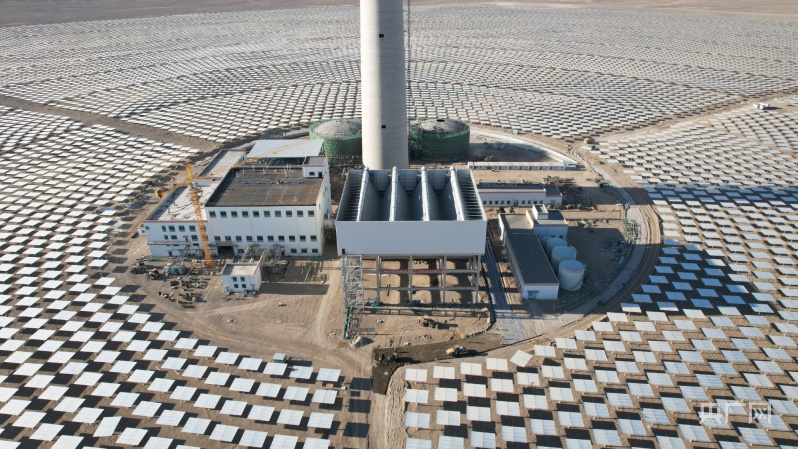中光太陽(yáng)能“10萬(wàn)千瓦光熱+60萬(wàn)千瓦光伏”項(xiàng)目現(xiàn)場(chǎng)(央廣網(wǎng)發(fā) 金塔縣委宣傳部供圖)
