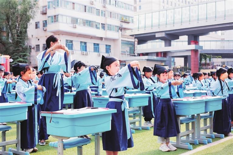 與此同時(shí),蘭州市七里河區(qū)第二小學(xué)為270余名一年級(jí)新生也舉行了入學(xué)“開筆禮”儀式。