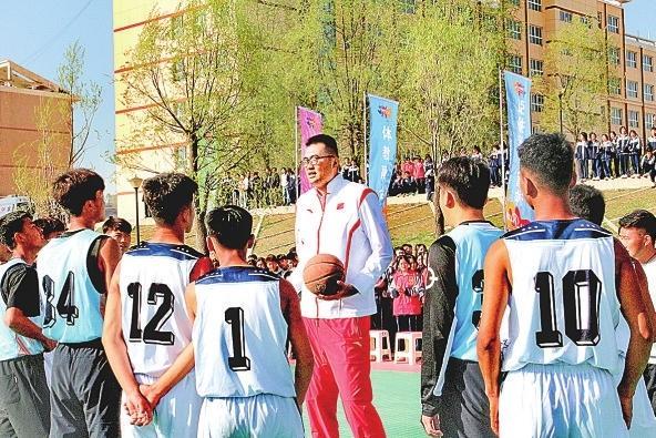 男籃前國(guó)手張兆旭在積石山與學(xué)生互動(dòng)交流。