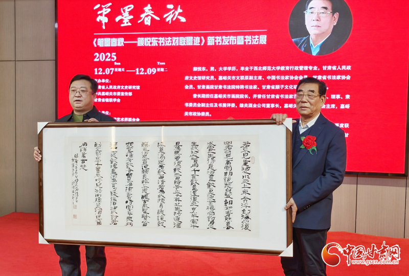 中國(guó)甘肅網(wǎng)12月7日訊(西北角·中國(guó)甘肅網(wǎng)記者 任磊)12月7日上午,《筆墨春秋—顏悅東書法對(duì)聯(lián)墨跡》新書發(fā)布暨書法展在甘肅省藝術(shù)館啟幕。本次展覽集中呈現(xiàn)顏悅東近年來創(chuàng)作的120幅書法作品,同期發(fā)布的新書收錄楹聯(lián)作品330副,系統(tǒng)呈現(xiàn)了作者在書法領(lǐng)域的藝術(shù)探索與創(chuàng)作成果。