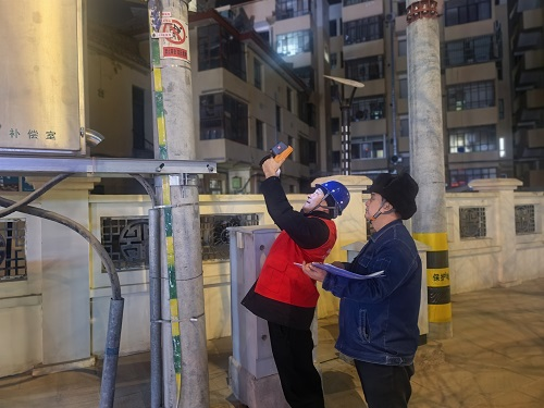 “10千伏124北西線03號開關(guān)設備紅外測溫正常……”在夜巡過程中,工作人員手持紅外測溫儀,沿著線路及配變逐桿逐段進行仔細檢查,重點對變壓器、斷路器、熔斷器等設備進行測溫,對接頭、線夾、刀閘等易發(fā)熱部位進行了詳細檢查,及時掌握設備運行情況,不放過任何一個可能存在的安全隱患。對于夜巡過程中發(fā)現(xiàn)的隱患,工作人員做到了及時登記,及時整改,絕不拖延;對于不能現(xiàn)場整改的隱患,則制定了詳細的整改計劃,并列入問題清單,以便集中整改落實,切實做到隱患缺陷早發(fā)現(xiàn)、早處理。