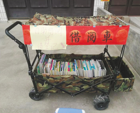 早上9點(diǎn)左右,自助借閱車(chē)從外婆家推出門(mén),天黑了再推回來(lái)??吹较胱x的書(shū),讀者自行登記書(shū)名和個(gè)人信息,留下聯(lián)系方式,就能把書(shū)借回家。