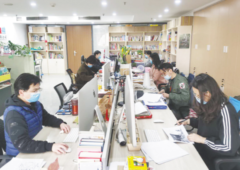 二十一世紀出版社集團南極熊出版公司的員工在工作中。