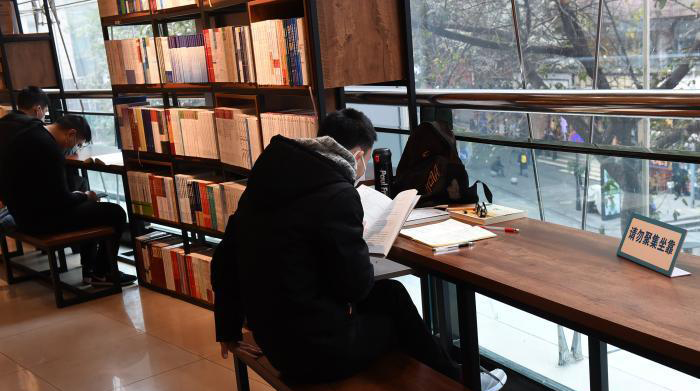 資料圖:圖為重慶書城恢復(fù)營業(yè),市民戴著口罩閱讀?!≈芤?nbsp;攝
