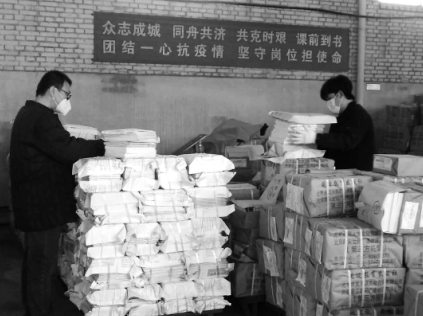 為減少人員聚集,張家口市店教材用書部與部分學(xué)校溝通聯(lián)系,根據(jù)不同的年級和班級劃分了領(lǐng)書的時段,采取分年級分時段領(lǐng)書的方式,由每個班級家長委員會的家長到校取書,離校后再把書分給本小組的家長。張北分公司采取了教材教輔裝袋進校、分時段發(fā)放的方式。員工們加班加點連夜為張北縣二中3600名學(xué)生配發(fā)圖書,確保第二天送書到校。赤城分公司積極與學(xué)校溝通對接,縣城學(xué)生的教材全部采取郵寄的方式快遞到家,農(nóng)村偏遠(yuǎn)地區(qū)也都送達(dá)了行政村。