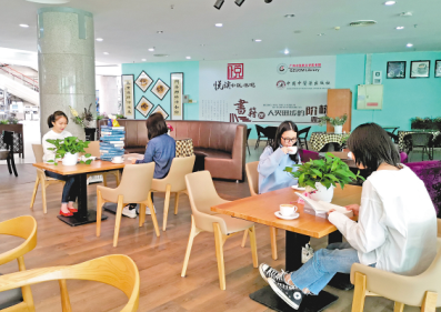 廣州中醫(yī)藥大學(xué)里的悅讀中醫(yī)書吧為同學(xué)們提供了舒適的閱讀氛圍。