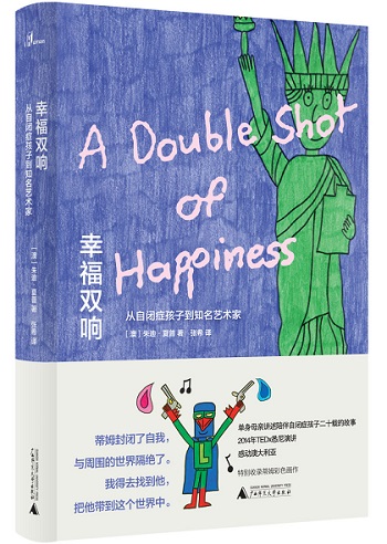 書名《幸福雙響》(A Double Shot of Happiness),來自蒂姆最愛的創(chuàng)作之一。朱迪用優(yōu)美且感人肺腑的筆觸,訴說著蒂姆漫長的人生旅程——從被診斷為重度自閉癥患者到嶄露頭角成為備受推崇的藝術(shù)家,以及一個(gè)能夠愛人與被愛的年輕人。