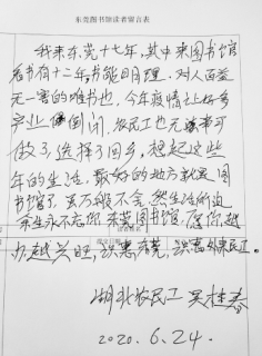 吳桂春:這句標語我現(xiàn)在聽你說,才知道是誰的題詞,怪不得圖書館里的顯著位置都有“知識惠東莞”這句話。當時覺得只要在圖書館辦一張借閱證,我這種外來民工也能進來看書。書籍對每一個人來說都是公平的,不管誰看,都能得到實惠,知識也能惠及外來民工。