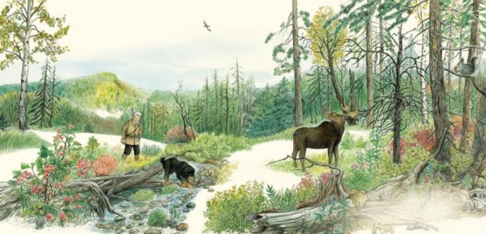 《鄂溫克的駝鹿》內(nèi)頁圖畫,由女畫家九兒執(zhí)筆。接力出版社供圖