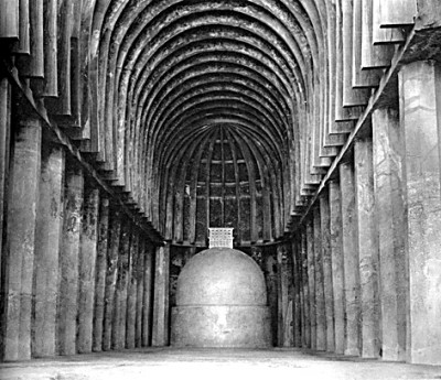 ③印度巴賈石窟12號(hào)支提窟內(nèi)景。來(lái)源:《東方建筑》