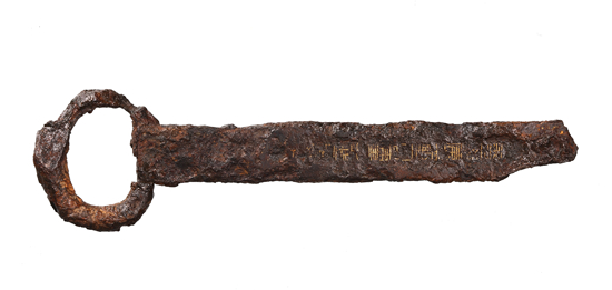 漢代在蜀地設(shè)有蜀郡和廣漢郡兩處工官,從目前的實(shí)物資料來看,金馬書刀均為廣漢郡工官所造,所用原料均為三十煉(即銘文中的“卅湅”)的鋼材。煉的數(shù)量反映出一定的工藝標(biāo)準(zhǔn),漢代工匠們對(duì)鋼反復(fù)折疊鍛打,減少夾雜物并使成分分布得更加均勻,從而得到不同煉數(shù)的優(yōu)質(zhì)鋼材,最頂級(jí)者即“百煉鋼”。作為文具,三十煉的鋼已屬“大材小用”,更兼用高超的錯(cuò)金工藝施加紋飾,無怪乎金馬書刀能夠獲得社會(huì)上層的青睞。