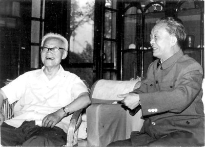 艾青(右)與巴金在交談 資料圖片