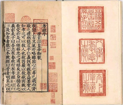 韋力說:“當(dāng)年天祿琳瑯有很特殊的規(guī)定,比如它所藏書的封皮都要用五色織錦和黃綾裝裱,同時鈐上乾隆的五方玉璽。但那時宮里沒有專門的裝幀人,所以有一種說法,宮中太監(jiān)把書拿到琉璃廠找修書匠,請他們按照要求統(tǒng)一修補。一來二去,修書的和太監(jiān)便商量著調(diào)包了。他們?yōu)槭裁锤疫@么干?因為皇帝根本沒有時間看書,那些書放了好多年,根本沒動過。”