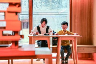 5月8日,一對母子在福建省晉江市東石鎮(zhèn)“母親的房子”圖書館內(nèi)閱讀。今年5月,福建省晉江市東石鎮(zhèn)“母親的房子”圖書館正式對外開放。“母親的房子”是福建省晉江東石籍作家蔡崇達《皮囊》書里所描述的一座房子?,F(xiàn)在,這座房子被他改造成了一座現(xiàn)代風格與閩南特色相融合的公益圖書館,成為當?shù)毓参幕囊徊糠?。新華社發(fā)