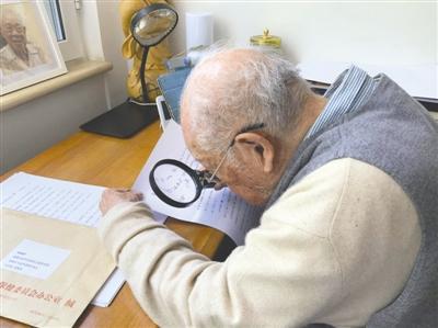 “我雖然歲數(shù)很大,身體不好,眼睛近瞎,但是我仍然堅(jiān)持在北大養(yǎng)成的習(xí)慣,學(xué)習(xí),學(xué)習(xí)再學(xué)習(xí),眼睛看不清楚,我用放大鏡也要讀書。”說著,馬識途拿起了身邊的放大鏡示意。