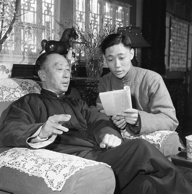 資料圖片:馬連良教徒弟掌握京劇唱腔(1962年3月攝) 新華社