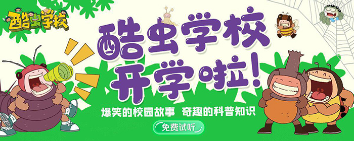 根據(jù)原創(chuàng)昆蟲科普知識爆笑校園漫畫改編的《酷蟲學(xué)校科普有聲故事》,以爆笑幽默的校園故事、新奇有趣的科普知識、廣播劇標準的精心制作等特點,激發(fā)小讀者對大自然的熱愛,建立生態(tài)文明的宏觀觀念。