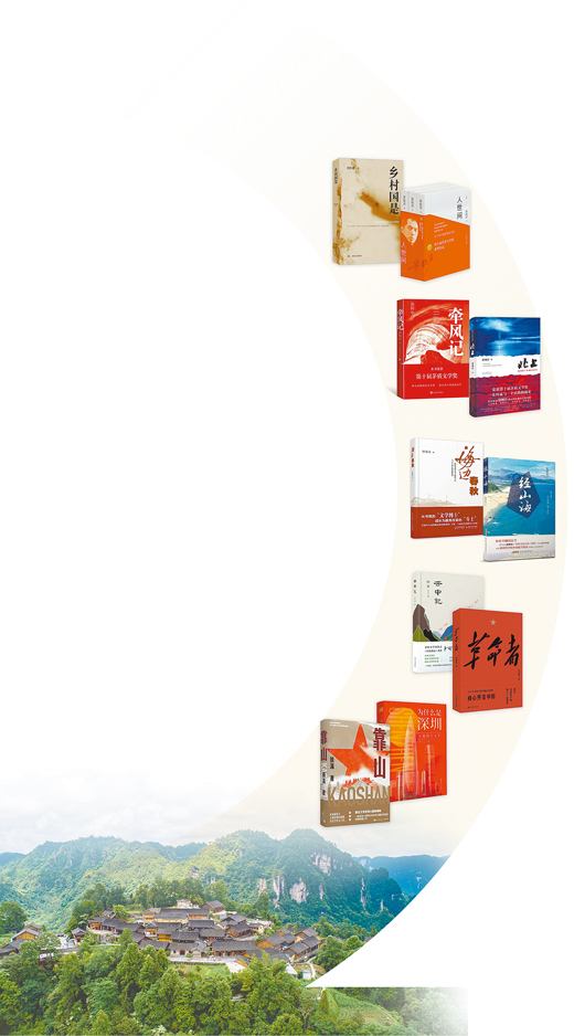 書影圖片從上至下依次為《鄉(xiāng)村國是》《人世間》《牽風記》《北上》《海邊春秋》《經(jīng)山?!贰对浦杏洝贰陡锩摺贰稙槭裁词巧钲凇贰犊可健?。資料圖片