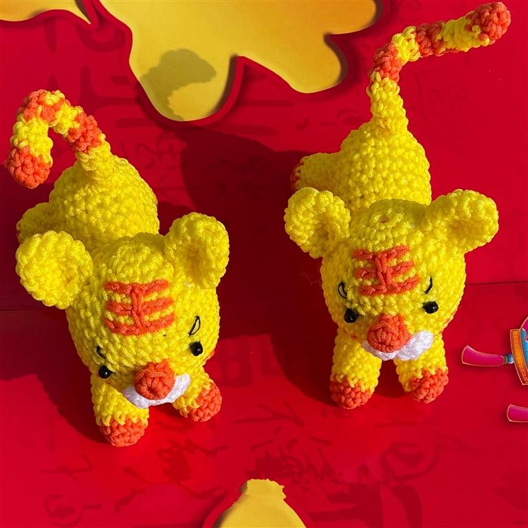 萌虎手工的色澤搭配也動(dòng)了不少腦筋。選擇靚麗的色澤,盡量貼近老虎黃色的皮毛和深色的紋理,較好地展現(xiàn)百獸之王的風(fēng)采,取悅它,展示它,才是手工之作的重要步驟。