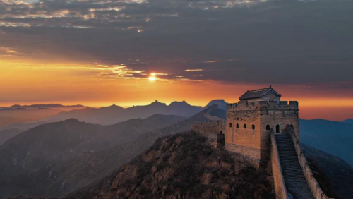 跨峻嶺,穿荒原,橫瀚海,經(jīng)絕壁,縱橫十萬里。望不斷長(zhǎng)龍烽垛,雄關(guān)隘口,猶如玉帶明珠,點(diǎn)綴成江山錦繡。起伏奔騰,飛舞盤旋,長(zhǎng)城就是中國人給這個(gè)世界增添的偉大奇跡。