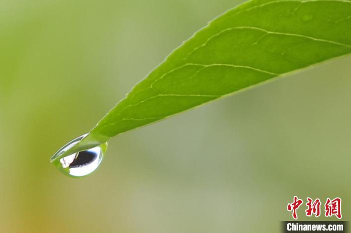 資料圖:樹葉上的雨滴晶瑩剔透。泱波 攝