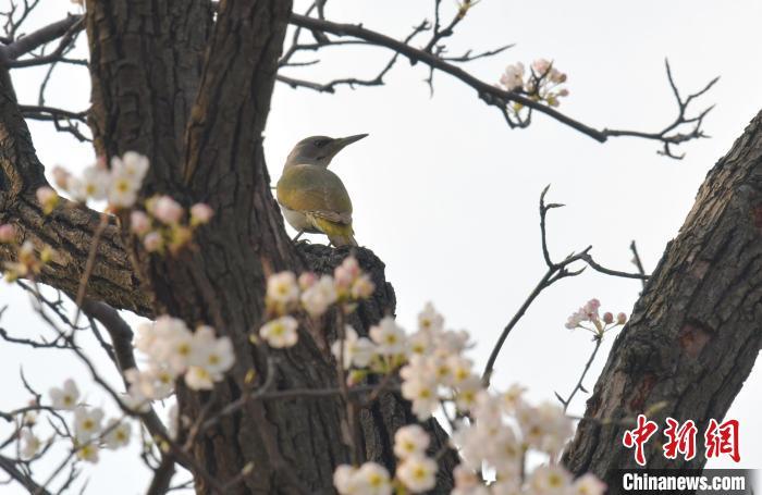 資料圖:鳥兒在梨樹枝頭停留。劉峰 攝