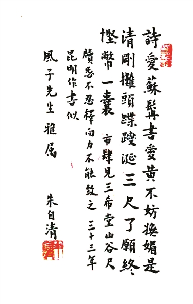 1946年春,朱國(guó)華調(diào)至四川敘永,他收到了哥哥手書的詩稿《寄三弟敘永》。朱自清深情追憶了弟弟為他轉(zhuǎn)移藏書的往事:“鐵鷲肆荼毒,鄰室無遺痕。賴汝移藏書,插架今紛綸……”兄弟二人因愛書護(hù)書情更濃。