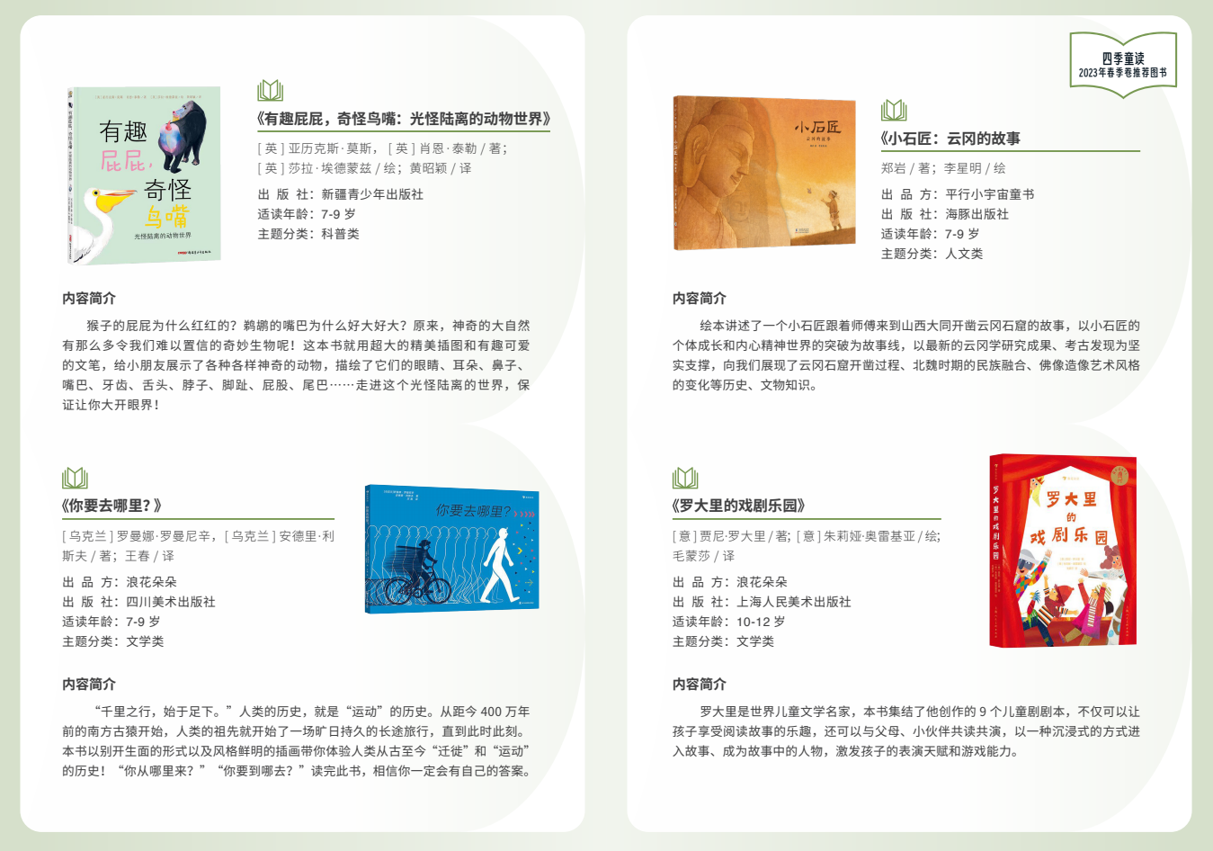 國家圖書館發(fā)布2023年“四季童讀”春季卷書單