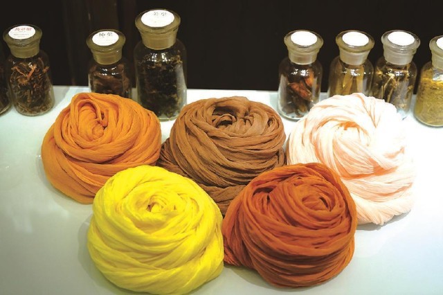 而與大多數(shù)傳統(tǒng)色彩研究者不同的是,曾啟雄極為重視實(shí)驗(yàn)考證。作為一位技藝精湛的染色家,其論著里介紹傳統(tǒng)染色的文本內(nèi)容及圖片,都是他親歷親為、反復(fù)實(shí)驗(yàn)后的成果,這也是該書最為精彩之處。在染色實(shí)驗(yàn)過(guò)程中,除了復(fù)原了傳統(tǒng)顏色的本來(lái)面貌外,作者還做出如下貢獻(xiàn):首先,通過(guò)大量實(shí)驗(yàn)印證了古籍記載的真?zhèn)危⒓m正了其中一些不實(shí)之處。比如,他通過(guò)在柘木里添加明礬、高溫染色后的結(jié)果,顛覆了以往認(rèn)為唐代帝王穿用的“柘黃”袍服是暗淡赭黃色的普遍認(rèn)知,印證其應(yīng)為類似明清時(shí)代帝王使用的明黃色。其次,使用不少篇幅介紹了不同的染料、媒介物等因素對(duì)于染色效果等的制約作用。以石榴皮作為染材為例,當(dāng)它與不同媒染劑,如明礬、鐵等進(jìn)行染色時(shí),則會(huì)形成由黃色到黑褐色的不同顏色。即使采用相同的染法,因棉麻絲綢等介質(zhì)迥異,也會(huì)染出不同顏色等。最后,該書對(duì)于各種染料特點(diǎn)、工藝程序、顏色效果等的表述,較其他相關(guān)論著也更加纖悉無(wú)遺和引人入勝,如關(guān)于紫膠蟲的染色工序的詳盡介紹等,讓讀者有一種身臨其境、意欲參與的感受。