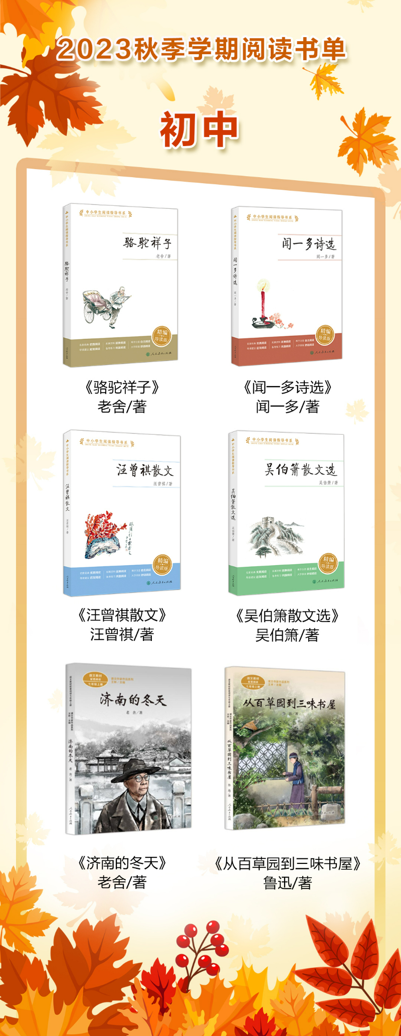 2023秋季學期初中閱讀書單