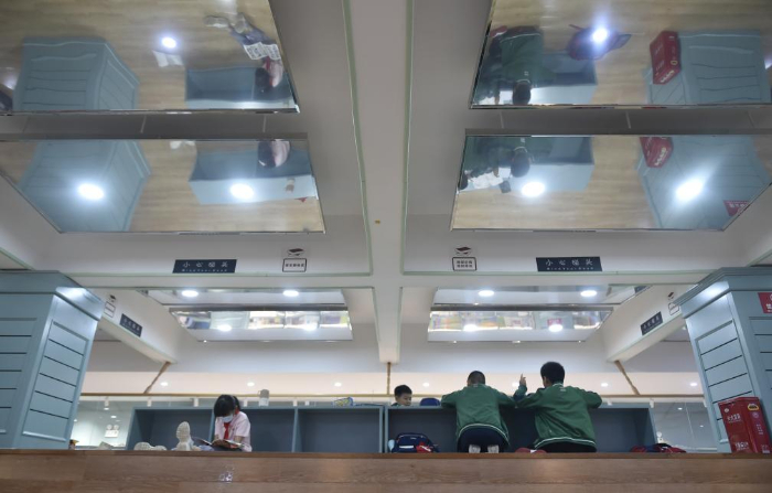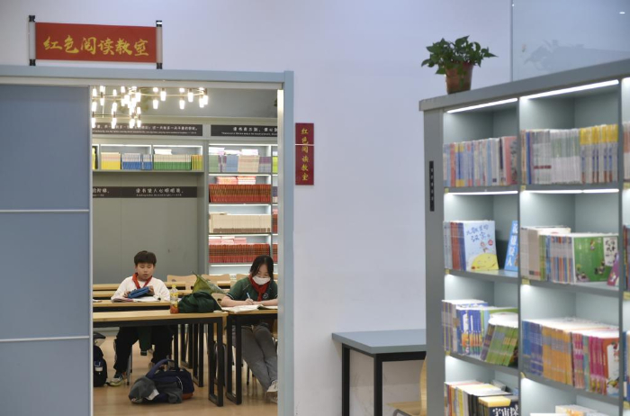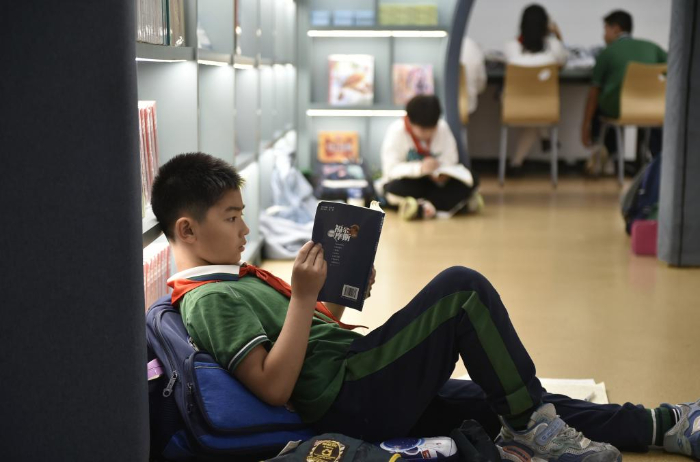 10月18日,小學(xué)生在鄭州市緯五路第一小學(xué)校園閱讀中心內(nèi)閱讀。