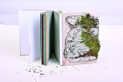 值得一提的是,上述書(shū)籍中有許多僅容納了少量文字信息,甚至完全脫離了文本的限制,藝術(shù)家僅借“書(shū)”的形式與面貌來(lái)傳遞自己的所思所感。這類(lèi)作品既是書(shū)籍,也可看作獨(dú)立的藝術(shù)裝置,呈現(xiàn)出書(shū)籍裝幀與其他藝術(shù)門(mén)類(lèi)相互融合的發(fā)展趨勢(shì)。