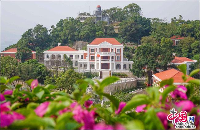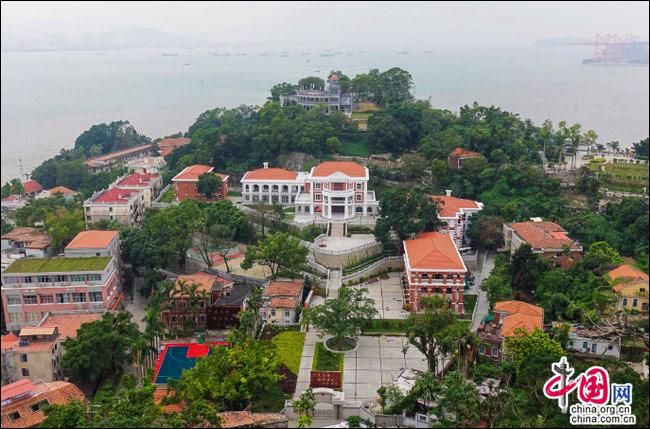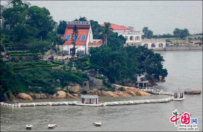 如果有這樣一座島嶼——遠(yuǎn)處是一方寧?kù)o的藍(lán)天,近處是一片幽深的綠樹,藍(lán)與綠之間,是逶迤而去的清水紅磚……極目遠(yuǎn)眺,只見她濃淡相宜、遠(yuǎn)近相安,仿佛一幅肅穆祥和的印象派油畫;細(xì)細(xì)聆聽,似乎還有一支悠揚(yáng)的鋼琴曲,在伴隨海鷗與濤聲,不時(shí)從畫中飄來(lái)……